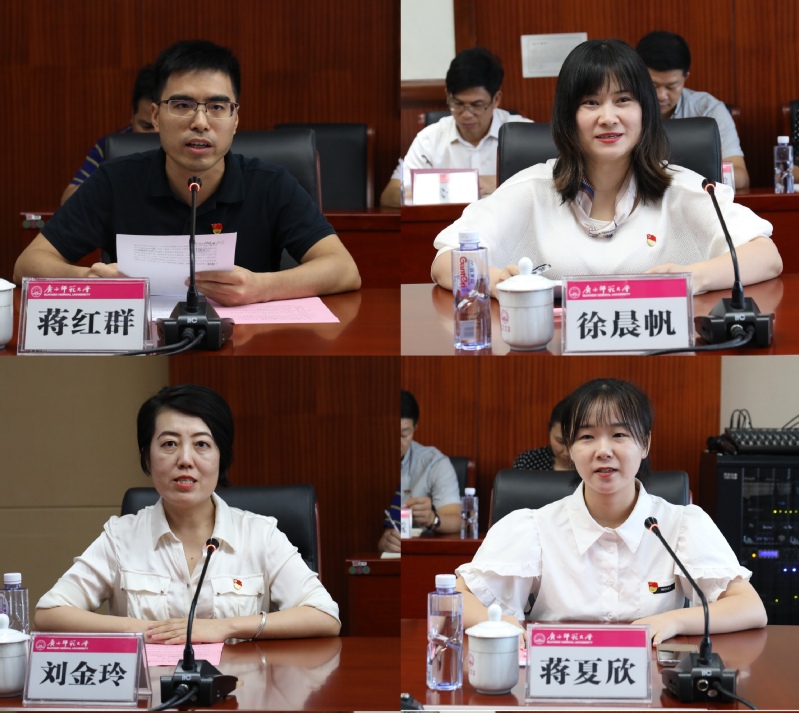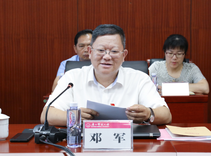 7月7日,我校在雁山校区召开学习贯彻习近平总书记在庆祝中国共产党成立100周年大会上的重要讲话精神座谈会。校党委书记邓军在讲话中强调,要把学习贯彻习近平总书记“七一”重要讲话精神作为理论武装工作的重中之重,作为下半年党史学习教育的重要内容,切实把思想和行动统一到习近平总书记的重要讲话精神上来,为谱写国内高水平大学新篇章、建设新时代中国特色社会主义壮美广西、全面建设社会主义现代化强国和实现中华民族伟大复兴的中国梦而不懈奋斗。