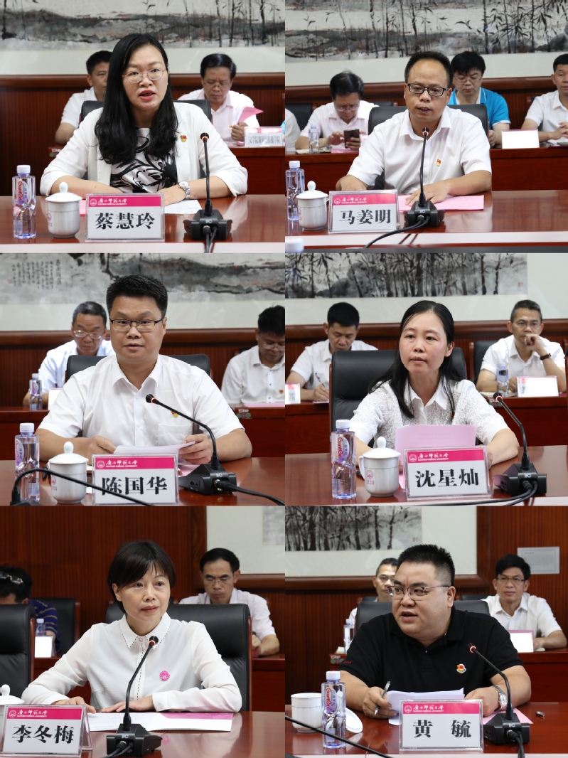 附属单位代表、广西师大出版社集团有限公司副总编辑黄毓表示,习近平总书记的重要讲话高屋建瓴、气势磅礴、内涵丰富、思想深邃,令人鼓舞、催人奋进。新时代,作为奋斗在党的意识形态领域的出版人,要认清发展大势,感知国运变化,发出时代先声,打造高质量出版物。要毫不动摇坚持党对出版工作的坚强领导,始终把政治建设、意识形态放在首位,矢志不渝坚持正确的出版导向,推动学校的出版工作高质量发展。