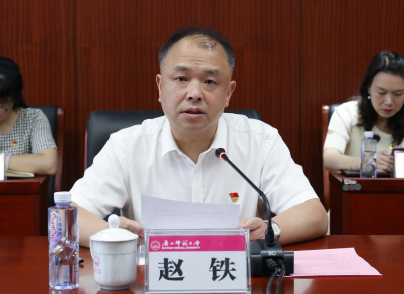 校党委副书记赵铁主持会议,校党委常委、纪委书记莫坷,校党委常委林国庆、黄海波、汤志华出席会议。学校相关职能部门主要负责人、各二级学院(部)主要负责人以及党员师生代表参加会议。