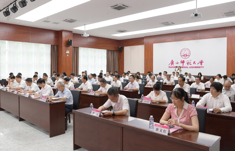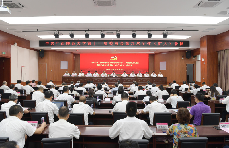 中国共产党广西师范大学第十一届委员会第九次全体(扩大)会议,于7月8日在学校育才校区国教中心201报告厅顺利召开。