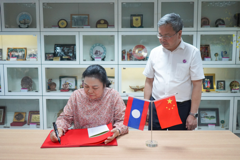 老挝驻华大使坎葆·恩塔万在贵宾簿上留言
