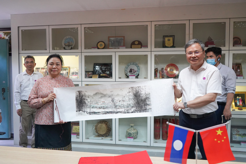苏桂发副校长代表学校向老挝驻华大使赠送礼物