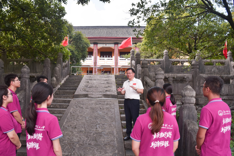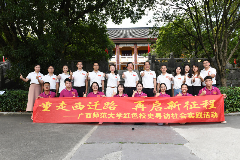 7月25日,我校“重走西迁路,再启新征程”活动的最后一站回到桂林,全体人员来到学校王城校区,踏寻历史的脚印,重温这段光辉足迹。此次活动由校长贺祖斌带队,副校长林春逸,校办、宣传部、学工部(处)、校团委、高师中心、教育学部、美术学院相关人员及辅导员、青马班学生共计30余人师生代表共同参加。