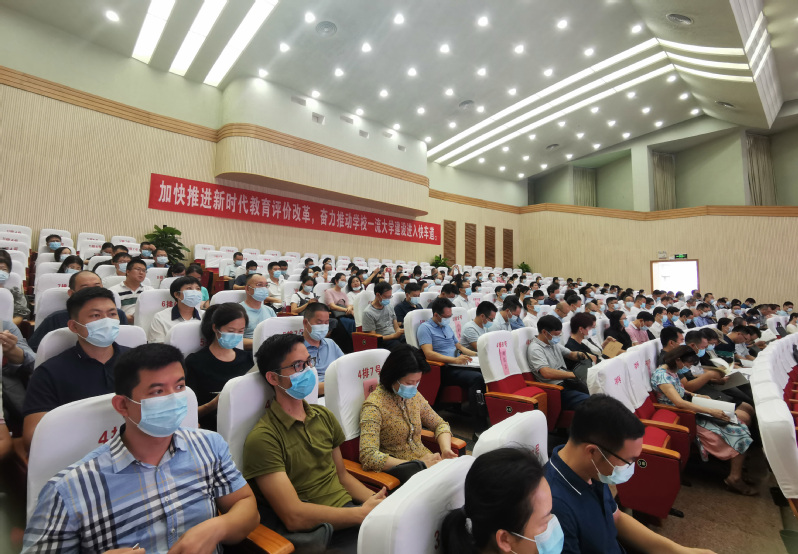 校长贺祖斌从背景与基础、现状与问题、路径与展望三个方面作了题为《深化教育评价改革,推进一流大学建设》的主题报告,运用大量翔实的数据、案例和对比分析,全面系统地阐述了新时代深化教育评价改革“为何改、改什么、怎么改”,重点结合高等教育发展现状和我校发展实际,就我校如何深化教育评价改革作出解读和部署。