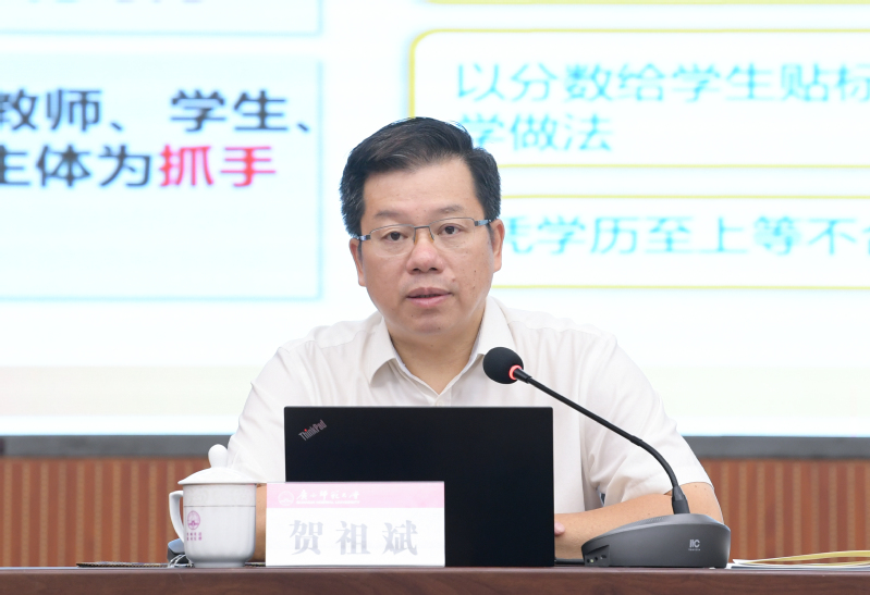 校长贺祖斌作题为《深化教育评价改革,推进一流大学建设》的主题报告