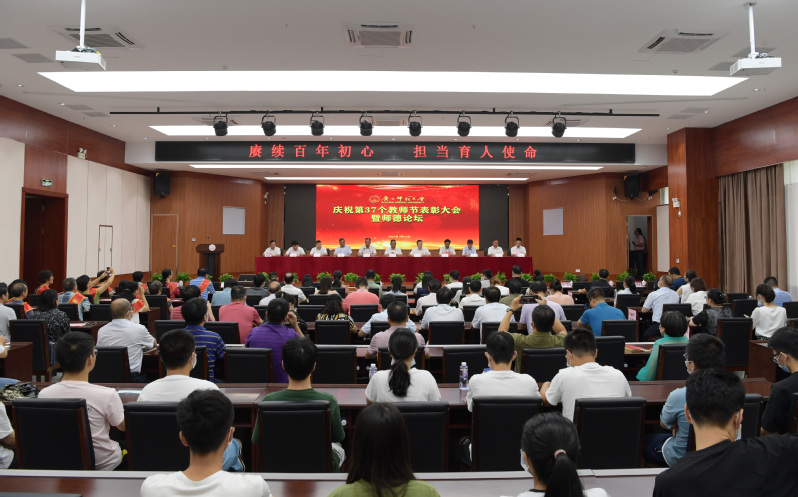 9月10日下午,我校在育才校区举办以“赓续百年初心,担当育人使命”为主题的庆祝第37个教师节表彰大会暨“独秀教师”师德论坛。校党委书记邓军为退休教职工代表颁发“光荣退休纪念杯”,校长贺祖斌在大会上讲话。大会由校党委副书记旷永青主持。