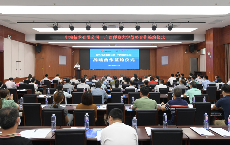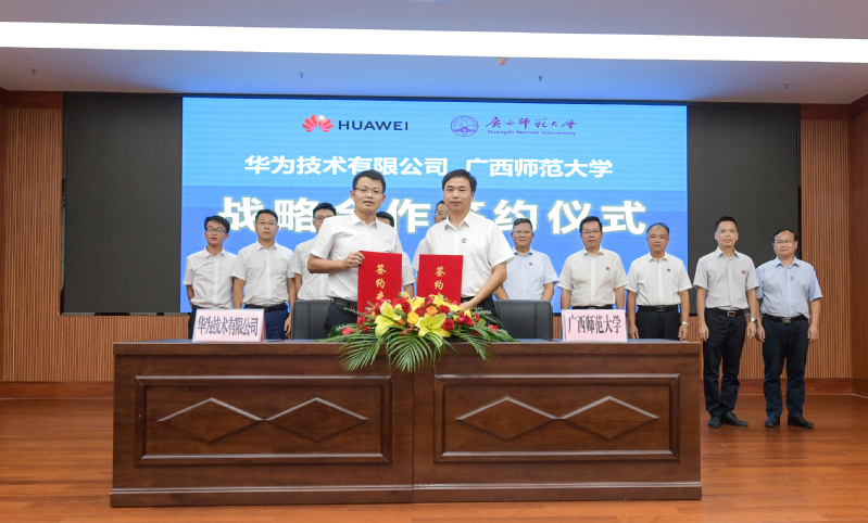 9月23日,我校与华为技术有限公司签署战略合作协议。双方将围绕科研合作、人才培养和智慧校园建设等方面开展更深层次的合作。校党委书记邓军出席签约活动,校长贺祖斌,华为公司广西总经理刘涛出席签约活动并讲话。校党委副书记赵铁主持仪式。