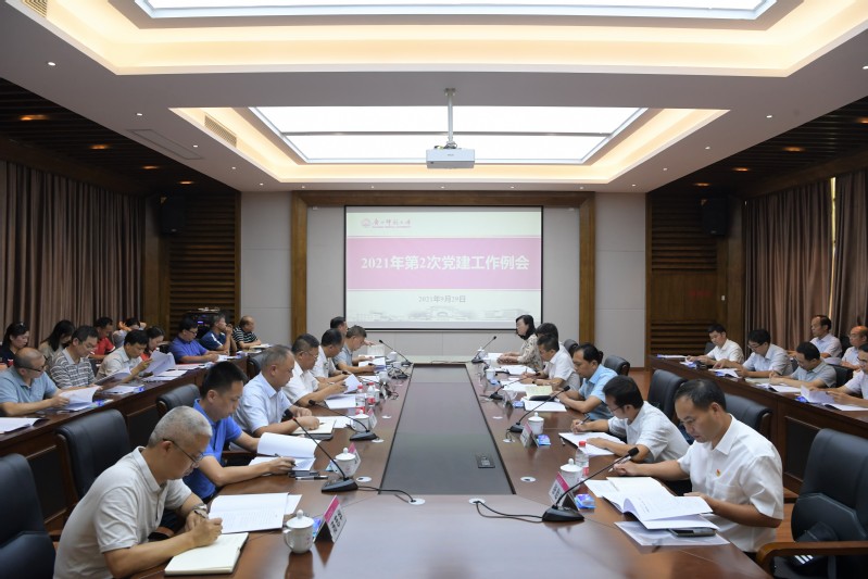 9月29日下午,我校在雁山校区第四会议室召开2021年第2次党建工作例会,总结交流全国全区高校党建示范创建和质量创优培育创建单位的建设经验,部署新学期学校党建工作的重点任务。校党委邓军书记出席会议并讲话,强调要坚定不移加强党的政治建设,持之以恒推进基层党组织标准化规范化特色化建设,坚定不移推进全面从严治党,全面提高学校党建工作质量,以高质量党建引领学校事业高质量发展走在全区高校前列。