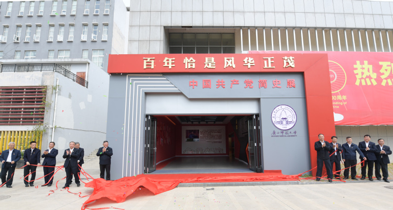 在全国上下深入学习贯彻习近平总书记“七一”重要讲话精神之际,10月14日,我校在雁山校区纯道楼举行“百年恰是风华正茂——中国共产党简史展”开幕仪式。校领导邓军、旷永青、赵铁、黄文韬、苏桂发、莫坷、林春逸、李英利,校党委常委林国庆、黄海波、汤志华出席仪式并共同为展览揭幕。