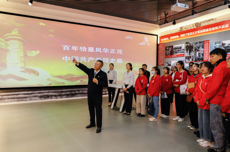 10月15日下午,校党委书记邓军走进学校“中国共产党简史展”,与师生党团员一起开展现场教学活动,为师生现场讲授“不忘育人初心砥砺奋进,赓续百年辉煌谱写新章”主题党课。