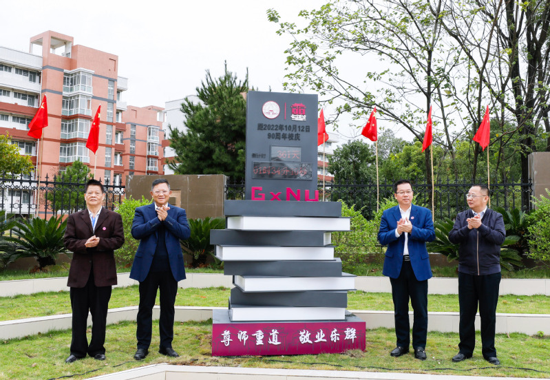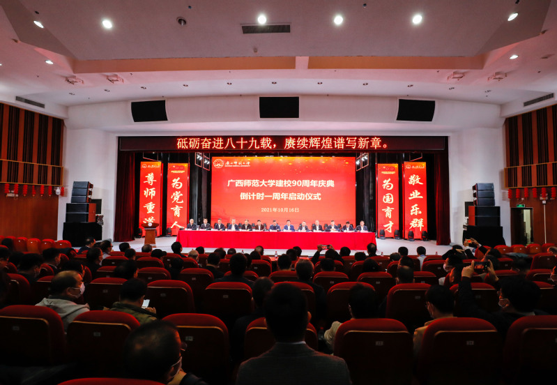 10月16日,我校举行90周年校庆倒计时一周年启动仪式,三校区正式启用校庆倒计时牌。《广西师范大学90周年校庆公告(第一号)》及90周年校庆主题、形象标识同时发布,向社会各界和广大校友发出正式邀约。校党委书记邓军、校长贺祖斌出席活动与校友代表黄理彪、陈琳一同为校庆倒计时牌揭幕。中国教育报、广西日报等主流媒体第一时间关注报道本次活动。