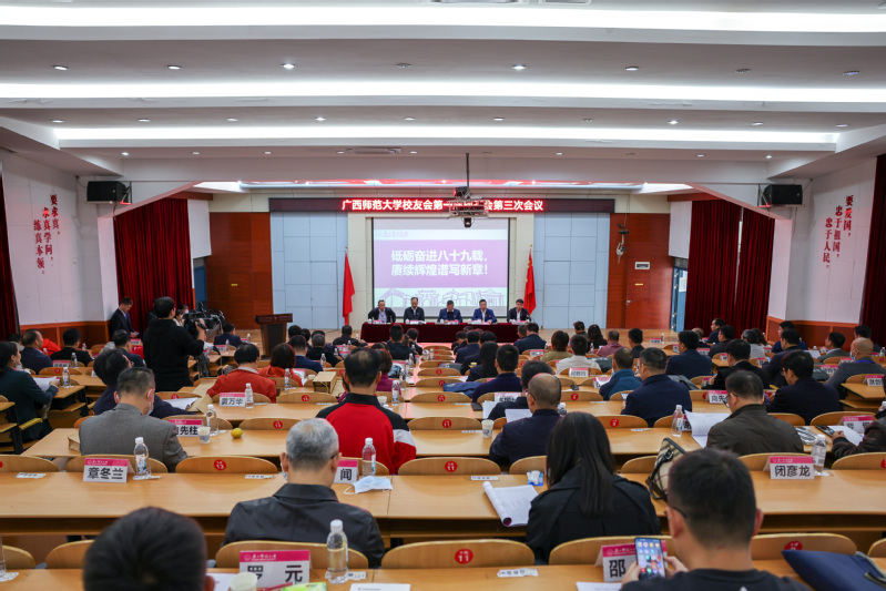10月16日,我校校友会第一届理事会第三次会议暨常务理事会第五次会议在雁山校区文二楼219学术报告厅隆重召开。校党委书记邓军、校长贺祖斌、副书记旷永青出席会议,与校友会理事、校友代表100余人畅叙校友情谊,共话发展蓝图。会议我校党委常委、总会计师李英利主持。