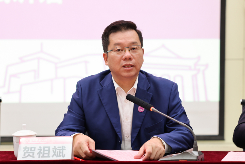 贺祖斌首先向参会的各位理事、各位校友表示欢迎;向长期关心和支持学校建设与发展的校友们表达了谢意;对新当选、新加入的理事表示祝贺和欢迎。他向校友们介绍了学校近年来校友工作开展情况,学校综合改革、“双一流”建设情况。他指出,校友是学校办学的名片,是支持学校建设和发展的重要群体。各地校友会、校友们心系母校、情牵师大,为助力学校高质量发展发挥了重要作用。