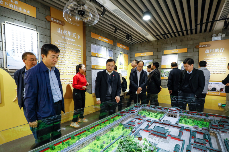 会前,调研团一行实地考察了我校“三全育人”综合改革建设成果展览、恬园学生社区和雁山校区桂学博物馆。