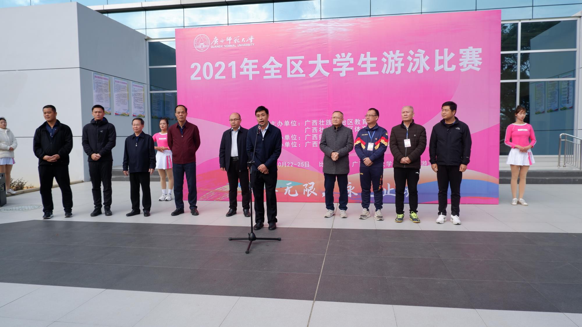 10月22日,2021年全区大学生游泳比赛在我校雁山校区开幕。自治区教育厅体卫艺处蒙红光出席开幕式并宣布2021年全区大学生游泳比赛开幕。大赛由广西壮族自治区教育厅和广西壮族自治区体育局共同主办、广西师范大学承办、广西学校体育卫生艺术学会协办。