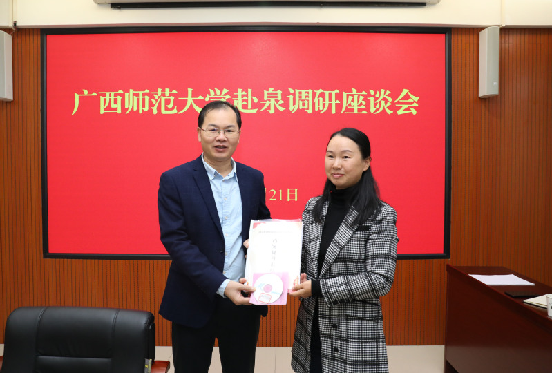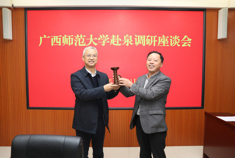 座谈上,赵铁对福泉市的热情接待和馈赠我校史志资料表达感谢。他表示,这次考察之行是一趟“感恩之旅”“寻根之旅”“梦境之旅”,对深化我校抗战时期西迁办学校史研究和校史馆建设具有重要价值。下一步,我校将进一步挖掘整理校史资料,传承红色基因,将丰富的校史转化为立德树人的宝贵资源。同时希望,双方能进一步加强合作,发挥广西师大学科优势,为福泉地方经济社会发展贡献师大力量。