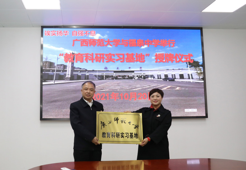 座谈会上,福泉市档案馆专家们对我校西迁历史事件进行了简要回顾,并提供了许多珍贵的史料图片。双方进行了国立桂林师范学院时期的复课档案及藏品交接。赵铁向福泉市档案馆专家颁发了我校校史研究员聘书。期间,我校与福泉中学签订了“教育科研实习基地”协议,附属中学还就提升基础教育合作办学等进行了深入交流。