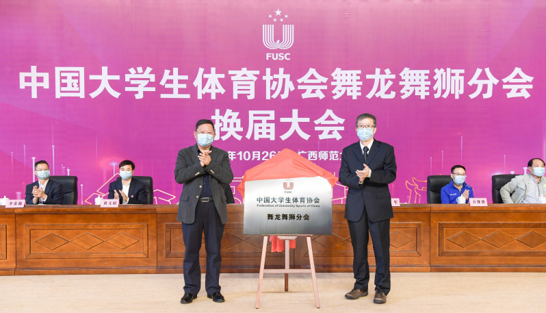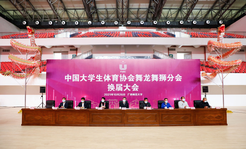 10月26日,中国大学生体育协会舞龙舞狮分会换届大会在我校雁山校区综合体育馆举行。教育部学生体育协会联合秘书处副秘书长、中国大学生体育协会副主席、秘书长张爱龙,自治区体育局副局长魏鹤,校党委书记邓军,校党委常委、副校长黄文韬出席大会。