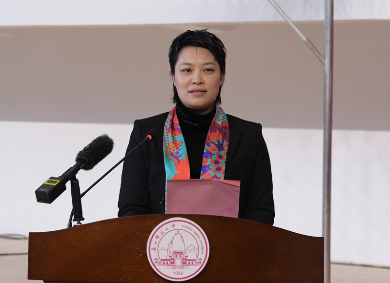 自治区教育厅体育卫生与艺术教育处处长万锋锋代表自治区教育厅对换届大会的顺利召开表示祝贺。他指出,中国大学生体育协会舞龙舞狮分会挂靠广西师范大学,是中国大学生体育协会对我区学校体育工作的认可与支持,是地方本科高校深化体教融合,健全协同育人机制重要交流平台希望学校抓住契机,把学校体育工作摆在更加突出位置,构建德智体美劳全面培养的教育体系。