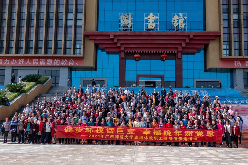 10月26日,校党委书记邓军、校党委副书记旷永青专程来到桂学博物馆看望慰问正在开展“我为群众办实事——雁山校区健身漫步走”活动的离退休教职工,与他们亲切交谈,向他们致以诚挚问候。校党委常委林国庆、汤志华,党委办公室/督查督办办公室主要负责同志一同参加看望慰问。