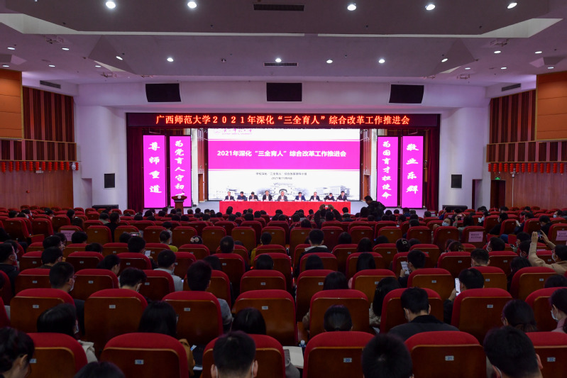 邓军强调,面对育人育才新形势、新挑战、新任务、新要求,我们要准确识变、科学应变、主动求变,以改革推动学校内涵式发展,用实干促进学校高质量提升,切实把“三全育人”综合改革作为新时代学校构建高水平人才培养体系的有力举措,以培养社会主义事业的建设者和接班人作为一切工作的出发点和落脚点,加强引领力、组织力、培养力和服务力等四力建设,着力推进全员育人;把育人工作贯穿招生、培养、就业三个阶段,着力推进全过程育人;构建“十大育人”体系,着力推进全方位育人。让育人主体持续“动起来”,育人过程持续“活起来”,育人质量持续“升起来”,努力交出新时代广西师范大学为党育人、为国育才的优秀答卷。