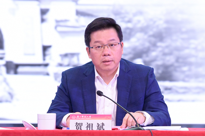 11月4日,我校2021年深化“三全育人”综合改革工作推进会在雁山校区音乐学院三楼综合厅召开,校党委书记、学校思想政治工作委员会主任邓军出席会议并讲话。校党委副书记、校长、学校思想政治工作委员会主任贺祖斌主持会议。