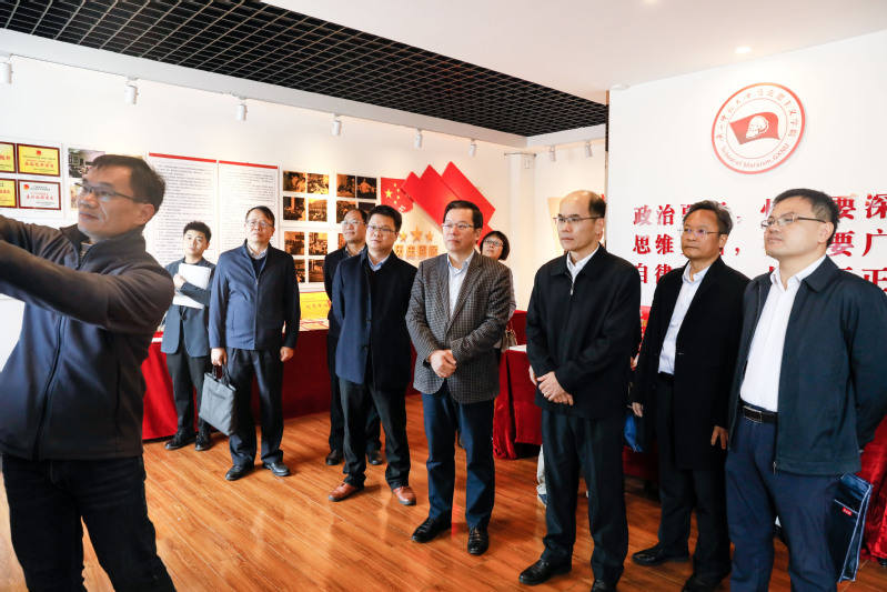 会前,马宁一行在贺祖斌、林春逸等陪同下参观了我校起文楼大厅、马克思主义学院院史馆、大学生网络思政社区、雁山校区图书馆和桂学博物馆。