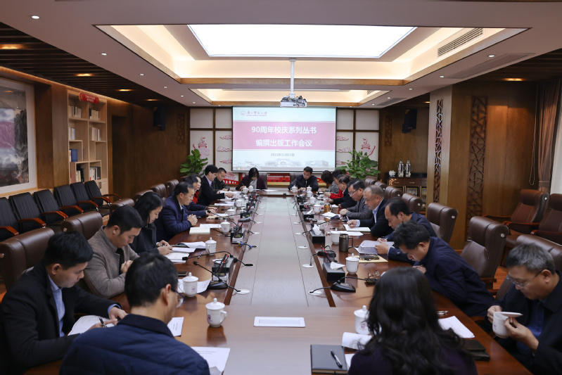 11月17日,我校在雁山校区起文楼第一会议室召开90周年校庆系列丛书编撰出版工作会。校长贺祖斌出席并讲话,校党委副书记赵铁主持会议。