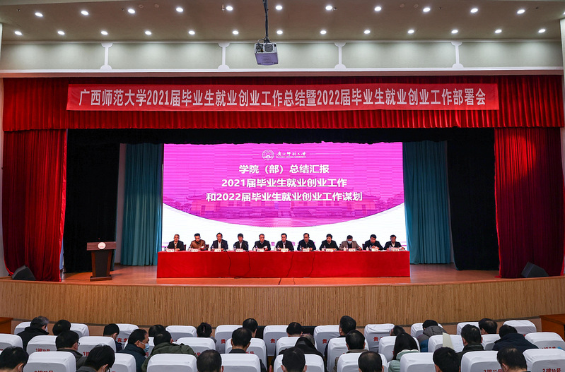 为全面贯彻落实党的十九届六中全会、中央经济工作会议和自治区第十二次党代会精神,认真落实党中央、国务院以及教育部、自治区党委、教育厅关于做好高校毕业生就业创业工作的重要决策部署,1月12日,我校在育才校区田家炳教育书院一楼报告厅召开2021届毕业生就业创业工作总结暨2022届毕业生就业创业工作部署会议。校长贺祖斌出席会议并讲话,校领导旷永青、赵铁、黄文韬、孙杰远、莫坷、李英利,校党委常委林国庆、黄海波、汤志华出席会议。校党委常委、副校长林春逸主持会议。