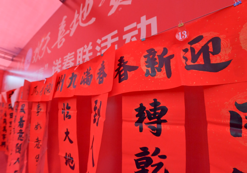 我校师生员工、教职工家属领取春联、福字和灯笼