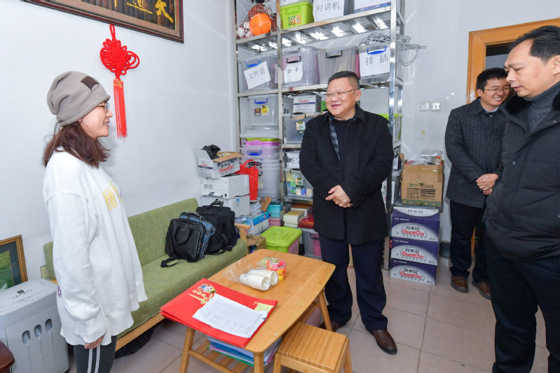 虎年新春即将到来之际,1月25日,校党委书记邓军率队在育才校区、雁山校区慰问寒假期间留校师生及坚守岗位的一线工作人员,代表学校为他们送去节日的问候和新春的祝福,并对学校部分项目建设工作提出要求。