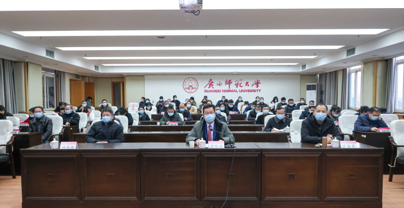 校党委书记邓军、总会计师李英利在南宁分会场出席会议。我校在育才校区图书馆一楼报告厅设立分会场,校长贺祖斌,校党委副书记旷永青,副校长孙杰远,自治区纪委监委驻学校纪检监察组组长莫坷,副校长林春逸,校党委常委林国庆、黄海波在分会场出席会议。