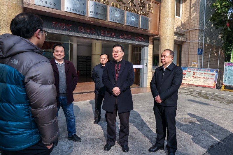 校长贺祖斌、校党委副书记赵铁一行实地走访物理科学与技术学院