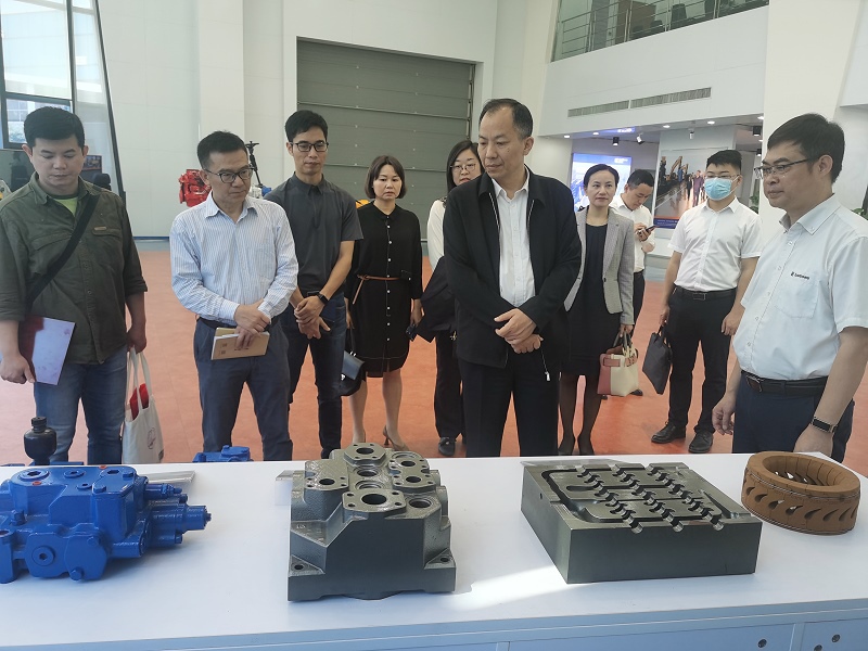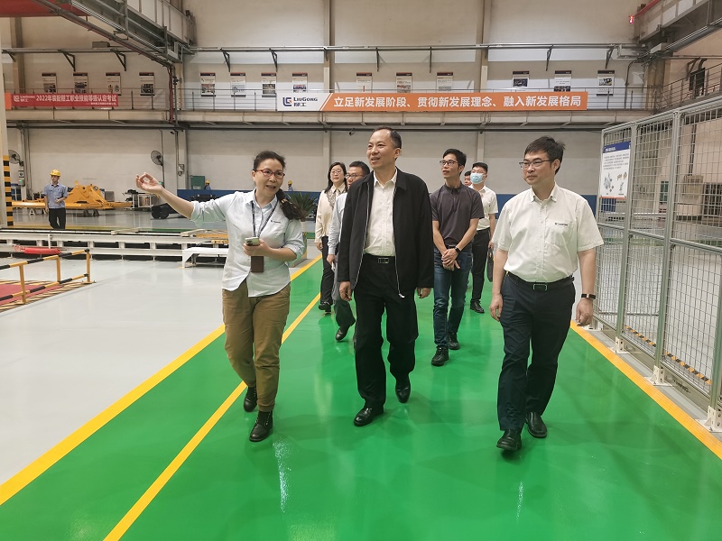 在广西柳工机械股份有限公司,双方围绕校企发展、资源共享、人才交流等内容进行了深入交流,并沿着习近平总书记在柳工考察时的路线进行了参观调研。