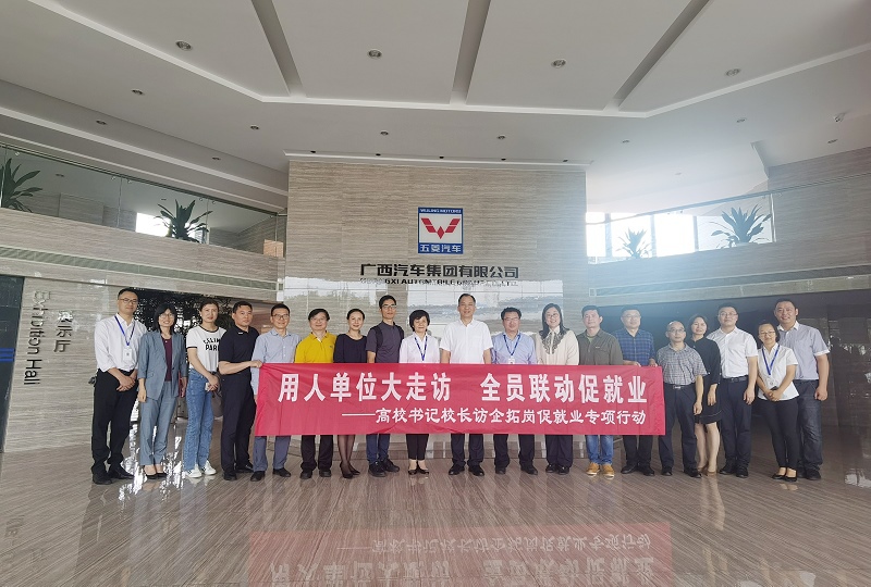 为认真贯彻落实党中央、国务院关于高校毕业生就业工作的决策部署,5月18日,校党委副书记旷永青带队在柳州开展“访企拓岗促就业”专项行动,实地走访了广西柳工机械股份有限公司、上汽通用五菱汽车股份有限公司、广西汽车集团有限公司,调研企业需求,深化校企合作,并与公司分别达成就业育人共建单位。