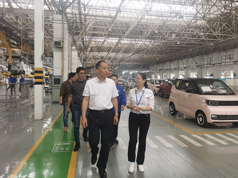 在上汽通用五菱汽车股份有限公司,双方就优化人才培养机制、深化项目合作等问题进行了深入的交流研讨。座谈会后,旷永青一行在公司负责人的陪同下参观了上汽通用五菱汽车组装车间。