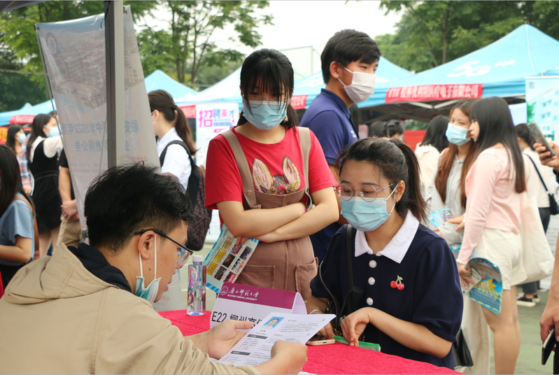 为贯彻落实全国普通高等学校毕业生就业创业工作电视电话会议精神,以就业促进周为契机,抢抓高校毕业生求职关键期,以“百日冲刺”状态全力做好高校毕业生就业工作,更好引导桂林高校毕业生留桂就业创业。5月20日,由广西教育厅主办,广西师范大学承办,广西大学生就业服务中心协办的广西2022届家庭困难高校毕业生专场双选会暨“宏志助航计划”专场招聘会(桂林专场)在雁山校区成功举办。广西高校毕业生就业创业指导中心副主任吴大平亲临现场指导工作,学校党委副书记旷永青与用人单位以及毕业生深入交流。学工部(处)、研工部有关负责人以及各学院(部)分管学生工作副书记、毕业班辅导员到场参会。