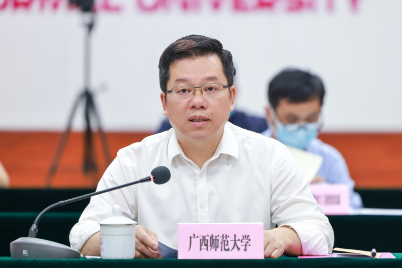 贺祖斌指出,学校坚持学科建设龙头地位,按照“高原建高峰”的学科建设理念,大力开展学科建设。在顶层设计上,从去年开始,学校就提出以“一校一策”形式推进学校建设国内一流大学的建议方案,得到自治区党委、政府的肯定和支持。近年来学校狠抓学位点建设,2018年以来,共新增博士点7个、学术型硕士点7个、专业型硕士点7个。新增的教育博士专业学位授权点,填补了学校专业博士点的空白,是广西首个教育博士专业学位授权点。化学、工程学两个学科稳居ESI前1%。获得6个广西一流学科建设点。在去年广西一流学科终期评估中,2个学科获得A档,3个学科获得B档。学校坚持“人才强校”核心战略,2017-2021年,全职引进专任教师453人,其中博士375人。自主培养和引进国家级人才9人次。