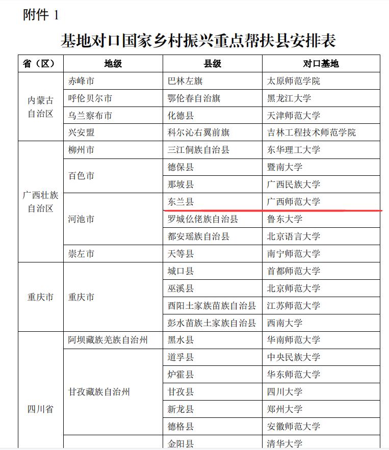近日,《教育部语用司关于对国家乡村振兴重点帮扶县开展教师国家通用语言文字能力提升在线示范培训的通知》发布,我校国家语言文字推广基地入选2022年度教育部国家乡村振兴重点帮扶县培训单位,对口帮扶我自治区革命老区东兰县。