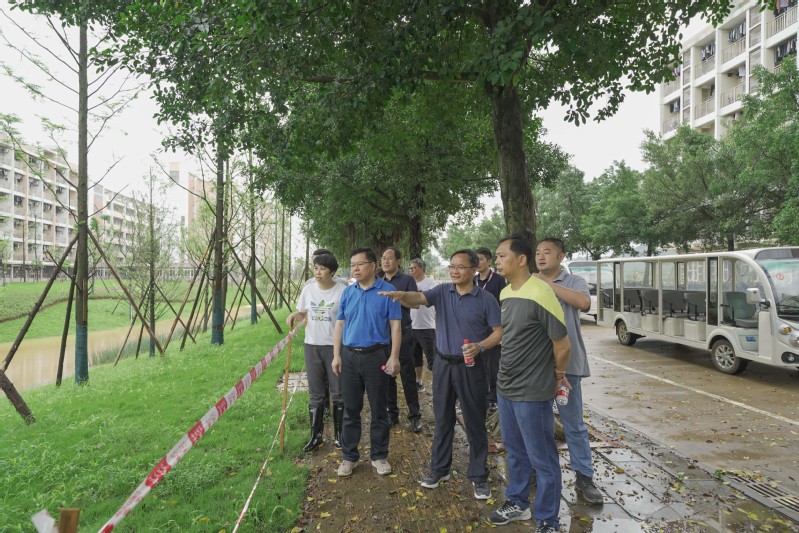 “大坝排涝能力怎么样?防汛工作还有哪些困难问题?”贺祖斌先后来到雁山校区东门水文观测点、防洪排涝工程、雁栖湖水系改造工程以及存在内涝风险的伯康楼、体育场馆等地,详细了解水文信息及汛情变化情况,要求各职能部门、各学院(部)负责人要密切监测雨情汛情,切实做到防范在前、发现在小、处置在早。