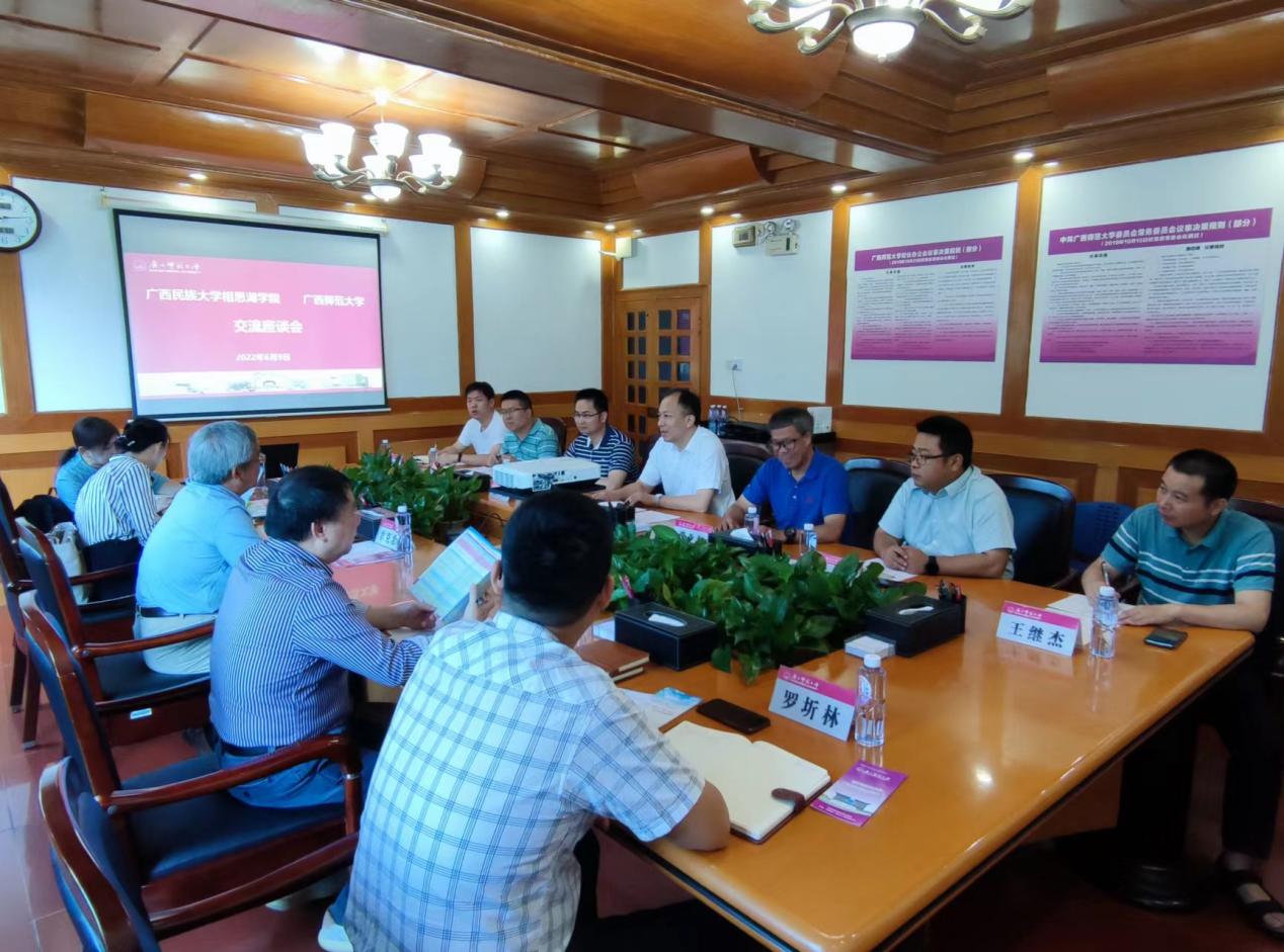 6月9日,广西民族大学相思湖学院农克忠校长一行5人到来校调研交流,座谈会在育才校区行政楼三楼会议室举行,校党委副书记旷永青出席调研座谈会。