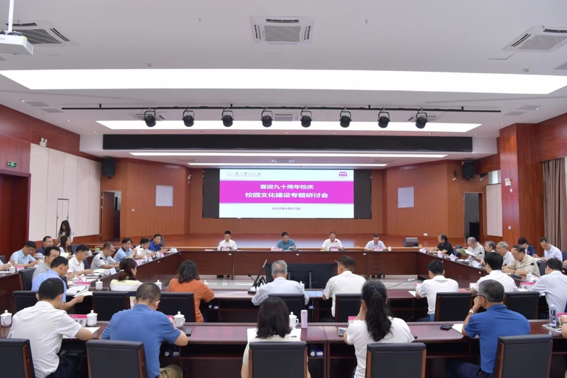 6月23日,我校于育才校区召开喜迎90周年校庆校园文化建设专题研讨会,归纳总结我校办学历史,提升凝炼具有学校特质的大学精神,推选兼具特色与内涵的校园文化景观。校长贺祖斌出席会议并讲话,校党委副书记赵铁主持会议。