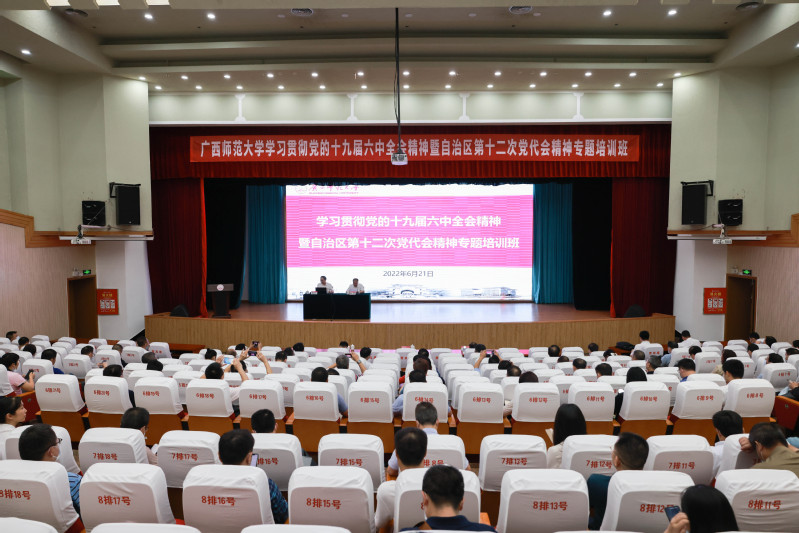 根据上级决策部署和学校党委工作安排,我校于6月21日在育才校区田家炳教育书院一楼报告厅举行学习贯彻自治区第十二次党代会精神领导干部专题报告会,自治区宣讲团成员、广西社会科学院党组书记、院长陈立生受邀作题为“牢记领袖嘱托,建设壮美广西——深入学习贯彻自治区第十二次党代会精神”的辅导报告。校党委副书记赵铁主持报告会。