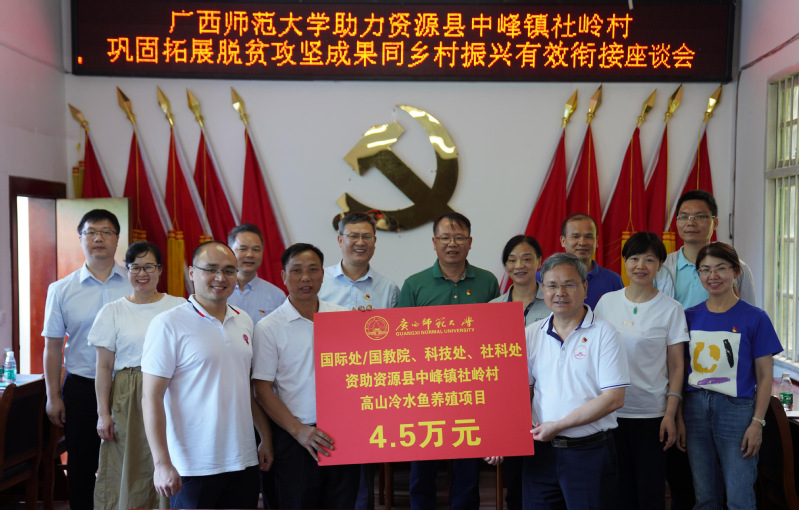 为发挥高校在人才培养、科学研究、社会服务、文化传承创新和国际交流合作等方面的重要作用,加快推进资源县脱贫地区乡村产业、人才、文化、生态、组织等全面振兴,6月27日,校党委常委、副校长苏桂发带领科技处、社科处、国际处/国教院、校医院等单位人员赴资源县中峰镇社岭村,开展以“助力资源县巩固拓展脱贫攻坚成果同乡村振兴有效衔接”为主题的基层健康义诊、走访慰问脱贫监测户、支持乡村振兴特色优势产业发展座谈会等系列活动。