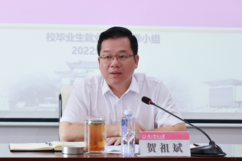 为全面贯彻落实党中央、国务院和自治区关于高校毕业生就业创业工作重要决策部署。7月5日,我校在雁山校区起文楼第五会议室召开2022届毕业生就业工作推进会。校长贺祖斌出席会议并讲话,驻校纪检监察组组长、校党委常委莫坷,校党委常委林国庆出席会议。校党委副书记旷永青主持会议。