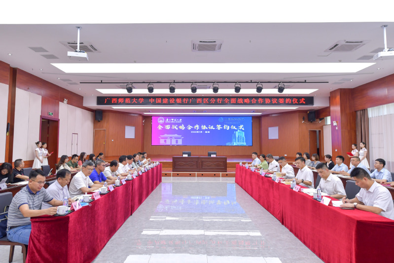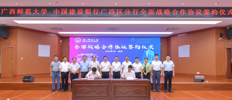 日前,为加快推进学校“双一流”和高水平大学建设,充分发挥中国建设银行品牌影响力和资源优势,持续推进信息化校园建设,共同推动金融科技与教育教学深度融合及创新发展,实现数字化校园管理,广西师范大学与中国建设银行广西区分行全面战略合作协议签约仪式于育才校区举行。校长贺祖斌、中国建设银行广西区分行党委书记、行长方建平出席仪式并致辞。
