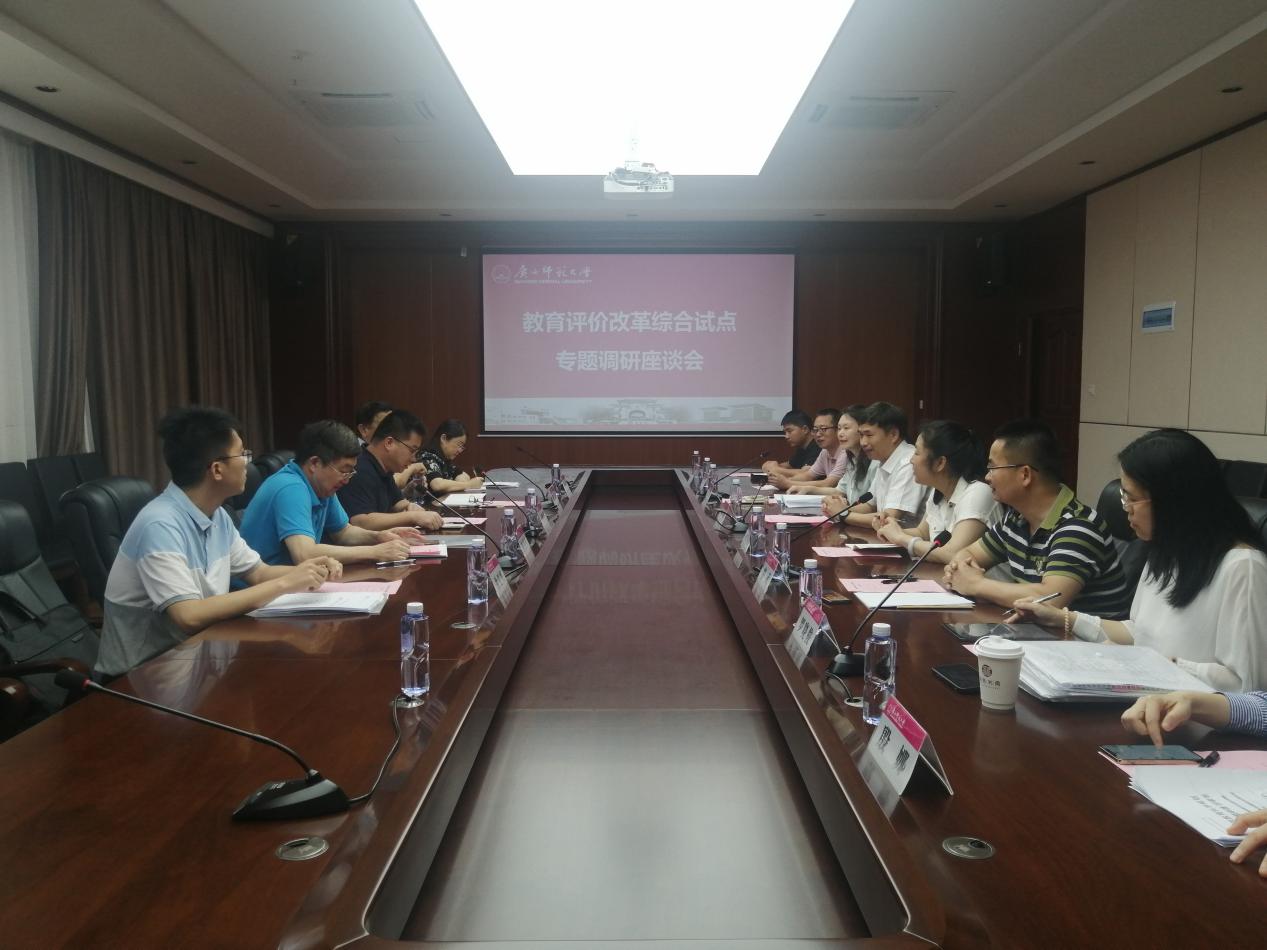 7月13日,自治区教育厅政策法规处李辉善处长一行5人到我校调研教育评价改革综合试点工作进展情况。调研座谈会在育才校区举行,校党委常委、副校长黄文韬出席会议。