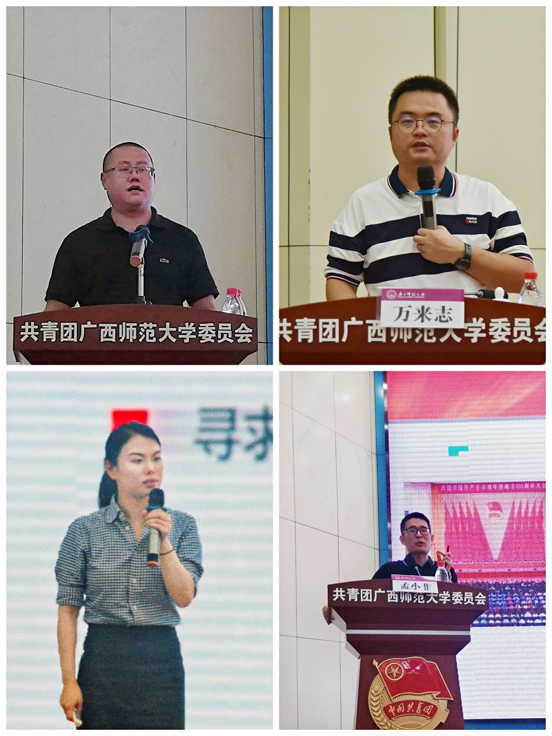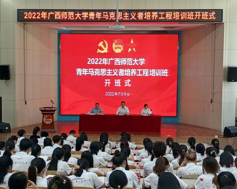 在全团上下深入学习贯彻习近平总书记在庆祝中国共产主义青年团成立100周年大会上重要讲话精神,喜迎党的二十大胜利召开之际,7月9日至7月13日,我校举办2022年广西师范大学第十六期青年马克思主义者培养工程培训班(以下简称“青马班”)暑期集中培训,来自各校级组织、各学院(部)的160余名同学参加本期培训。本期集中培训以专题讲座、实践教学、红色观影、素质拓展等形式开展,聚焦提升我校青马学员的思想政治理论水平。