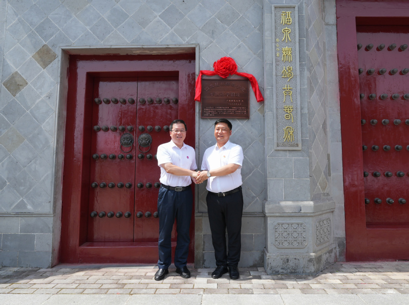 校长贺祖斌和福泉市委副书记、政法委书记韦恩胜共同为“国立桂林师范学院平越办学旧址”揭牌
