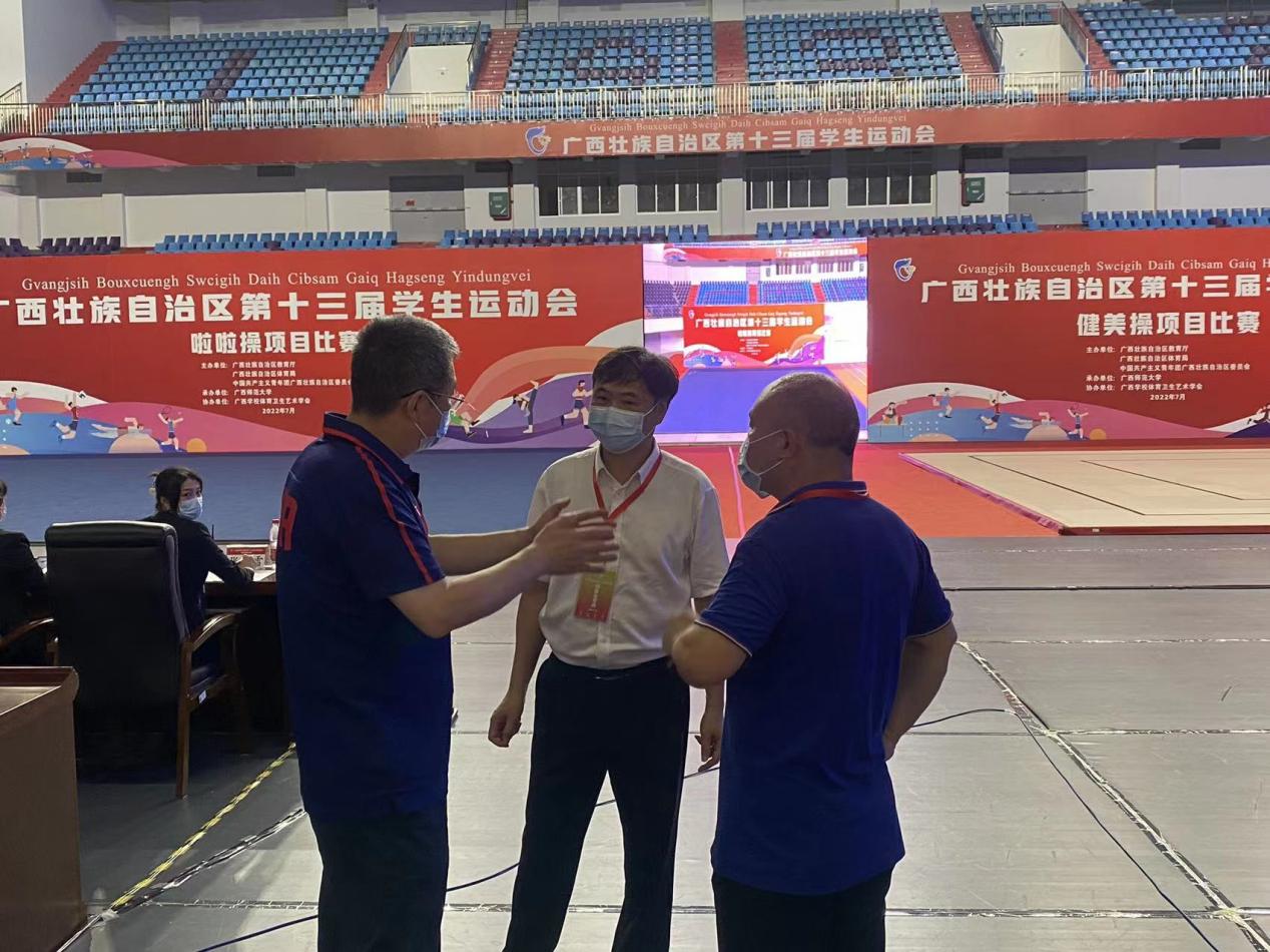 组委会负责人就广西壮族自治区第十三届学生运动会的赛事组织筹备、工作落实执行等情况进行了相关工作汇报,黄文韬副校长认真听取汇报内容,详细询问疫情防控、赛事组织、食宿安排、交通运输等各个环节,认真了解正在我校进行的排球项目(大学生组)比赛、啦啦操项目比赛以及其它赛事的筹备情况,现场查看了赛事场馆设施设备运行情况,关切的询问了现场工作人员及志愿者。